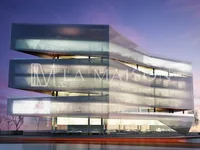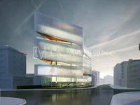 The building consists of a ground floor showroom space of approximately 550 m2, a mezzanine, three underground parking levels with a total of 110 spaces, and seven floors of luxury office space with areas ranging from 300 m2 to 550 m2. The organization of the building has been developed based on a theory of flexibility — all levels can accept different arrangements, division layouts, and uses. The office areas will be equipped with advanced electro-mechanical systems, and will offer unimpeded views from the center of Nicosia.