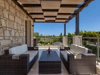 Stunning 4-bedroom villa located in the heart of the eastern plateau of the Aphrodite Hills Golf Resort, with panoramic views of the golf course. The villa is a 5-minute drive from the resort center, restaurants, golf club, tennis courts and spa center.The decoration, furniture and equipment of the villa meet the highest standards. The facility has its own swimming pool, huge terraces with recreation areas. The kitchen is made of dark wood with a built-in dishwasher, refrigerator with freezer, microwave, electric oven and stove.All rooms on the ground floor have access to a terrace with a swimming pool and a garden.From the large balcony of the second floor you can watch the magnificent sunsets. The master bedroom is located on the second floor, with a large wardrobe and a bathroom with a bathtub and a shower cabin. The bedroom has its own access to a shaded balcony with stunning views of the sea and mountains.The villa has an overflow pool of 6 x 12 m with Roman steps, a large relaxation area for sunbathing, a covered area with a wicker table and chairs and another large shaded area where there is a gas barbecue and a summer kitchen for outdoor cooking.