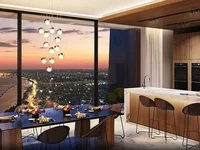 El apartamento de dos dormitorios ofrece un ambiente de vida lujoso y amplio, diseñado para reflejar la elegancia y el prestigio de la torre. La sala de estar y comedor de planta abierta se conecta perfectamente con una cocina de gama alta, creando un espacio central sofisticado ideal tanto para la vida cotidiana como para el entretenimiento.