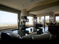 Impressive & luxury 3 bedroom penthouse with views of Limassol bay for sale in Panthea, Limassol. The smart home system penthouse was constructed by the highest standard using the finest quality building materials with superb interior finishes and fittings. The property comprises of 3 bedrooms which one is en-suite with a jet shower, speakers in all rooms, electric roller blinds. Penthouse inner area of 146 sqm, uncovered (15sqm ), big covered veranda (40sqm) with a view all over the Limassol city. Expensive appliances, fittings such as tiles are designed of Versace home, Grohe & Miele brands, stone bricks decoration and marble flooring is a part of a luxury lifestyle to be offered in a property. The whole covered area is decorated with modern touch of false ceiling with spotlights & lighting to offer a beautiful living experience. This recently renovated property offers a Prestigious location, luxury ambience & the best view of the city.