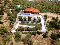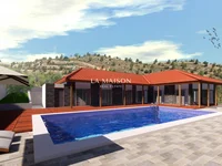 Modern residence under construction in Kornos. Kornos is an area equally distant between Nicosia, Larnaca and Limassol. It has uninterrupted view and located in a hill, surrounded with pine trees.