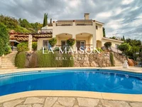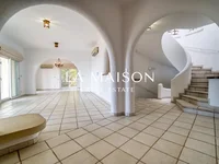 This enormous villa boasts majestic 180 degrees of the whole Paphos Coastline with incredible Mediterranean blue seas and breathtaking sunsets. Just walking distance from the Kamares Club House which offers all facilities - social club, concierge reception, restaurant, bar, events hall, swimming pool and medical centre. The quaintly pedestrianised Tala village square offers more entertainment, restaurants, pharmacy, supermarket and pubs which are only a short drive away. Located on the best road in Kamares - Kamares Avenue - the house is accessed by a private drive with turning circle for guests. Guests can enter through a private gate that takes them up a level to the pool area. Up another level is the front entrance and covered entertaining area. The lucky residents will enjoy a double electronic garage to safely protect their vehicles and they will use another internal staircase which was expertly crafted to look like a curved sea shell. The garage also offers a large storage area. The whole house is full of traditional arches in the classic Leptos style and is a masterpiece of the craftsmanship that propelled them to be one of the most successful developers in Cyprus. The architects designed every detail of the house to take advantage of the incredible views which can be enjoyed from every room with complete privacy! On the main level of the house there is a large open plan lounge with working fireplace to keep you warm and cozy. Central underfloor heating can be enjoyed during cold winter nights. Split level air conditioning units can change temperatures room by room to your comfort level. The open plan dining area leads out to a custom built BBQ designed by an Argentine expert. This connects to the large kitchen with a breakfast bar which is ideal for entertaining or large families. On the main level there is also a guest WC which is large enough to turn into another shower. Here there are 3 bedrooms. One was a music room, another an office and the 3rd was a guest room which has a large ensuite. The options are endless for a library, play area or gym. With all this space to play with, let your imagination run free and you can have everything that your heart desires. Upstairs on the top floor there are two further large bedrooms all with fitted cupboards and ensuites. Each bedroom also has a large uncovered balcony with fantastic panoramic sea views as a bonus. The house has a fully mature, irrigated garden with fruit and lemon trees for you to enjoy fresh lemons all year round! Please note that this house has been built on a DOUBLE plot and therefore the house is large and the grounds are extensive