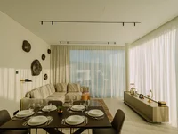 La zona de estar y comedor es amplia, con ventanas de suelo a techo que se abren a una gran terraza y piscina privada. La conexión interior-outdoor sin costuras hace entretenido sin esfuerzo, ya sea cenas familiares, barbacoas de verano o noches en el jacuzzi calentado.