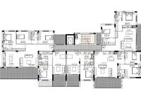 This modern three-storey apartment building which consists of fifteen comfortable apartments with a contemporary architectural arrangement of one, two and three bedrooms, two bathrooms, a unified kitchen and living room, and with large, covered verandas.