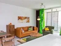 El apartamento cuenta con un luminoso y espacioso salón con amplias ventanas que llenan el espacio con luz natural, creando un ambiente cálido y acogedor. Una cocina totalmente equipada incluye todos los electrodomésticos esenciales como nevera, horno, vitrocerámica, microondas y lavavajillas. Los amplios dormitorios están diseñados con comodidad en mente e incluyen amplio espacio de armario. El baño está equipado con una sala sanitaria de alta calidad y una lavadora, añadiendo a la práctica diaria.
