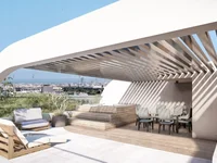 Este ático cuenta con un jardín privado en la azotea, con bañera de hidromasaje y vistas panorámicas a la ciudad. Este espacio al aire libre elevado crea un retiro exclusivo, perfecto para noches relajantes o para hospedar a los huéspedes en estilo. La propiedad también incluye aparcamiento privado, almacenamiento y sistemas de eficiencia energética.