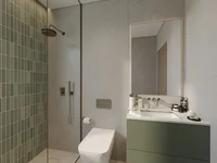 Los baños están diseñados con sofisticación en mente: duchas a pie, cerámica premium, accesorios cromados y dobles vanidades que transforman rutinas diarias en momentos de comodidad