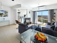Apartamento de 2 dormitorios en venta en Elysia Park. Este fabuloso complejo ha sido diseñado con la comodidad, la relajación y ofrece una gran riqueza de servicios e instalaciones. A poca distancia se puede encontrar la animada vida nocturna, zonas comerciales y playas de Pafos frente al mar. El apartamento tiene una sala de estar/comedor abierta y cocina. Las puertas de Patio del salón & cocina conducen a una terraza cubierta que ofrece vistas a la piscina. 2 amplios dormitorios con armarios empotrados y baño familiar concluyen el apartamento.