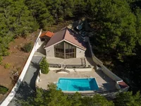 Discover a beautiful and unique luxury home nestled among the forests of Platres, ensuring complete privacy and security with its gated entrance and a private road leading to the residence. This meticulously maintained detached house spans two levels, featuring three bedrooms plus an office or extra bedroom, three bathrooms, a spacious eat-in kitchen, and generous living and dining areas. Abundant storage is provided by two expansive storage rooms. The villa boasts a large private swimming pool and ample patio/terrace space, perfect for entertaining guests. Situated on a vast 1624sqm plot with mature trees and landscaped gardens, the property offers tranquility amidst forest pine trees and stunning elevated views of the mountains. The kitchen, equipped with modern appliances, leads to an external purpose-built barbecue area and a covered wooden pergola. The property features underfloor heating, solar water heating, double glazing, a security alarm system, and a private road, all contributing to the comfort and privacy of your life. With four separate spacious bedrooms, including a master bedroom with an ensuite bathroom, this villa harmoniously blends luxury and natural beauty, providing an idyllic retreat in a serene forest setting.Set amongst the pine forest of Platres this is a beautiful Villa designed and built by the current owners. A very quiet, private and peaceful location in the heart of nature. 10 minutes drive to Troodos and 5 minutes to large supermarket, shops and amenities.
