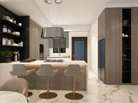 • Bathrooms finished with high quality marble effect porcelain tiles, suspended ceilings and high-quality vanity units, sanitary ware, accessories and mixers