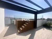 We are delighted to present the final available unit in one of the city's most desirable residential developments—a truly exceptional two-level penthouse that embodies luxury, elegance, and modern design. Spanning two expansive floors, this exquisite residence offers 136 sqm of refined interior space on the main level, featuring three spacious bedrooms, two sleek bathrooms, a guest toilet, sun-drenched balconies totaling 12 sqm, full air conditioning in all rooms, and electric shutters throughout. The upper level is a private sanctuary, boasting a 50 sqm open-concept kitchen and living area, an additional guest WC, a full shower and bathroom, and the highlight—a private rooftop pool with panoramic views of the city and the sea. This is a rare opportunity to own a one-of-a-kind urban retreat, blending sophisticated living with breathtaking surroundings.n during warm days.