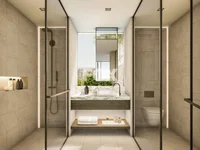 Accessed via a shaded private courtyard, this property sky-high glass walls fill the open spaces with sunlight, the sunken living room's 4.5m-high ceilings serving to enhance light and volume. Available in two- and three-bedroom layouts, indoor/outdoor living is prioritised; the kitchen seamlessly extending on to a large deck surrounding a private plunge pool, perfect for lounging, entertaining and dining al fresco.