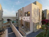 It is 1 floor high and it also includes an immense roof terrace and a huge basement that hosts lots of leisure space and a utility room with an en-suite bathroom. Looking at the property from the front, you see beautiful stairs leading you up to the entrance with an infinity edge swimming pool by its side with lots of patio area.