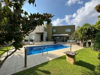 Jardines de paisaje, piscina, zona de barbacoa, toldos eléctricos para la sombra exterior, pantalla de cine donde se puede ver desde la piscina.