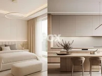 El apartamento está pensado con un luminoso salón de planta abierta, comedor y zona de cocina, mejorado por amplias ventanas panorámicas que traen abundante luz natural. Su posición de primera planta proporciona privacidad adicional mientras mantiene fácil acceso a las comodidades del edificio.