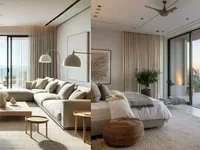 El apartamento está pensado con un luminoso salón de planta abierta, comedor y zona de cocina, mejorado por amplias ventanas panorámicas que traen abundante luz natural. Su posición de primera planta proporciona privacidad adicional mientras mantiene fácil acceso a las comodidades del edificio.