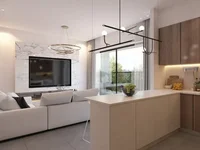 Set in the sought-after Agios Athanasios area of Limassol, this contemporary three-story residential building is scheduled for completion between 2026 and 2027. Thoughtfully designed for modern living, it features a total of seven apartments: six one-bedroom units spread across the first and second floors, and a spacious two-bedroom penthouse occupying the top floor. Each apartment comes with its own covered parking space and storage room, and the building is constructed to meet high energy efficiency standards (Class A). Residents will enjoy provisions for air conditioning, electric heating, electric car charging, mosquito nets, and electric shutters in the bedrooms. A photovoltaic system will supply energy to all common areas and partially support the penthouse, while a solar water heating system with a pressure boiler enhances sustainability. The building’s aesthetic is defined by sleek black aluminum finishes, exposed concrete balconies, and stylish black steel railings, offering a refined yet durable modern look.Completion - December 2026