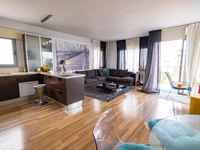 Situado en la planta superior de un edificio bien mantenido de tres plantas, el ático se beneficia de una orientación orientada al sur y una abundancia de luz natural. El interior consta de una cómoda zona de estar, una cocina totalmente equipada, dos dormitorios y dos baños, todos presentados en excelente estado y totalmente amueblados. Una terraza cubierta extiende el espacio habitable al aire libre, mientras que el jardín privado de 50 m2 de techo ofrece un entorno perfecto para relajarse o entretenerse en la privacidad.