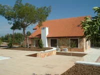 This residence is thoughtfully designed to combine comfort, functionality, and modern living. It features a solar and electric water heating system, ensuring efficiency and reliability throughout the year. The outdoor area is enhanced by a private swimming pool, surrounded by paved surfaces around both the house and the pool, creating a clean and practical outdoor environment. A wooden pergola adds charm and provides a shaded space for relaxation.