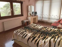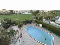 The property is fully furnished and features five bedrooms, two bathrooms, and generous indoor and outdoor living spaces. It includes a private swimming pool, landscaped garden, fireplace, balconies, playroom, attic/loft, and a storage room. The home is fully air-conditioned in all rooms and benefits from covered parking.