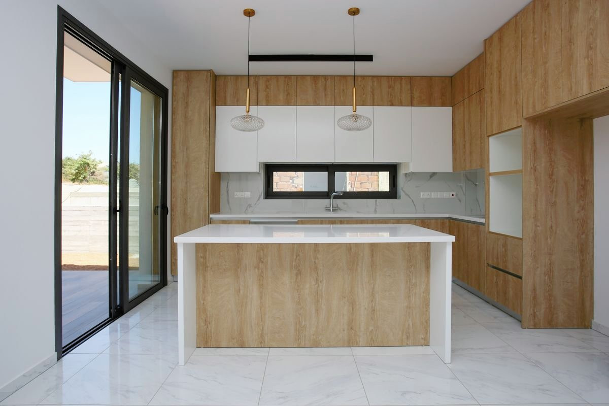 The thoughtful layout of the villas offers a spacious open-plan kitchen-living room on the ground floor with access to a covered veranda with a seating area and a garden, as well as a guest toilet.