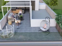 Las grandes ventanas invitan a mucha luz natural, creando un ambiente cálido y acogedor en todas partes. Salga a la amplia terraza cubierta (21 m2), complementada con una terraza adicional descubierta (7.4 m2), y jardín de techo (62 m2) ideal para relajarse o entretenerse mientras disfruta del clima mediterráneo.