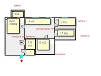 apartment 1 + 1 50m2 on the 3 floor of a brick house with elevator + balcony