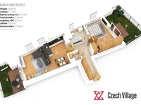 The area of the apartment is 62m2 + 11.5m2 front garden + 17.8 second front garden + basement.