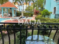 ¡Bienvenido a su retiro costero de ensueño! Santa María Del Mar. 1 dormitorio, 2 baños condominio ofrece 715 pies cuadrados de lujoso espacio habitable, actualizado con accesorios y electrodomésticos modernos. Ubicado a solo dos cuadras de las prístinas orillas de la playa de Bávaro en la encantadora Punta Cana. Entrar con un amplio diseño de concepción abierta que crea un ambiente cálido y acogedor. La zona de estar espaciosa ofrece el espacio perfecto para la relajación y el entretenimiento, mientras que las grandes ventanas invitan abundante luz natural, mejorando el encanto costero.