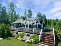 Venta de un complejo único a orillas de un lago brillante, una villa de alta calidad construida con troncos laminados, que combina comodidad, funcionalidad y paz de la naturaleza. La casa principal tiene dos dormitorios, una cocina bien equipada y una sala de estar, desde la cual grandes ventanas se abren directamente al lago. Alrededor del espacio, una amplia terraza le invita a disfrutar del paisaje de mañana a noche. El edificio está diseñado para todo el año y equipado con paneles solares tanto en el techo como en el patio que circula según el sol, una opción ecológica y eficiente en energía.