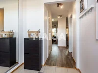 The apartment has undergone an interior renovation in 2023, when vinyls were installed on the floor, the ceiling was painted and the walls were wallpapered/painted. In addition, the bathroom received a nano-coating last year. The layout is practical and functional: both floors even have their own bathrooms! The backyard has a sheltered courtyard bordering the park and a patio overlooking the evening sun. In addition, the apartment has a spacious glazed balcony. The car can be conveniently placed in the canopy or in front of your own apartment.