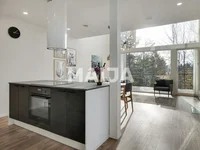 This stylish semi-detached apartment is located in a great location at the top of Kaskipuunmäki, on the edge of the cliff. Big windows flood light into this home. The open impression is emphasized by a high living room.