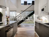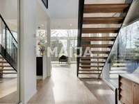 High-quality and timeless materials suit many tastes and give a calm atmosphere. The house is surrounded by a wide terrace, in addition, there is a balcony on the upper floor. Everyday life is facilitated by an indoor storage room with cupboards, which also has an entrance from the outside.