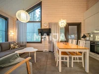 The apartment is designed with efficient use of the square footage. The facilities include two bedrooms, a spacious living room, a bathroom, a sauna and a separate toilet. The terrace facing the forest offers a comfortable setting for relaxation. There is also a garage space and lockable shareholders' locker, as well as shared storage and ski maintenance facilities.