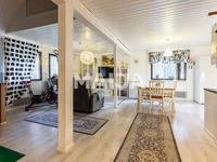Built in 1983, the semi-detached apartment offers plenty of space: about 120 m² of living space and includes four bedrooms, living room, kitchen, bathroom and sauna, separate toilet, walk-in closet and utility room/ technical room/ hallway. In addition, you will find a carport and storage room in a separate building. The kitchen has been renovated in 2020.