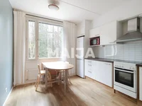 Gran habitación doble con alcoba de puerta corredera conectada al salón. El apartamento, dormitorio y cocina en la casa frente al bosque a partir del patio. El dormitorio y pasillo tienen armarios y parquet en los próximos años. Como extensión del salón, un balcón acristalado de buen tamaño.