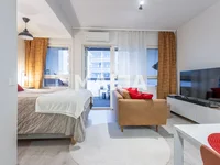 El amplio apartamento estudio ofrece un espacio y funciones excepcionales en la vida cotidiana de casi dos maneras. El diseño claro y fácilmente amueblado permite una sala de estar y dormitorio independiente. La joya absoluta del apartamento es el balcón acristalado de más de 10 m2, que sirve como una habitación adicional durante gran parte del año y aumenta significativamente la comodidad de vivir. Todo es ideal tanto para uso personal como para inversión.