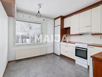 Situado en Nylanderintie, esta casa reformada adosada de dos niveles está lista para dar la bienvenida a su nuevo propietario. La amplia cocina independiente ofrece una excelente habitación para cocinar y un espacio cómodo para un comedor. El salón es grande y fácil de muebles gracias a su diseño funcional. Desde aquí, tiene acceso directo a un patio trasero protegido bordeado de setos, con un césped perfecto para los amantes del jardín y una terraza ampliada, parcialmente cubierta ideal para muebles al aire libre y relajación. Downstairs también incluye el segundo dormitorio de la casa y un aseo separado.