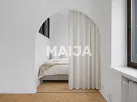 On Miina Sillanpää Calle, justo al lado de Hakaniemi Market Square, esta encantadora casa de la ciudad se encuentra en el cuarto piso. Completado en 1938, la casa representa la arquitectura funcionalista de los años 30, combinando clara linealidad y estilo atemporal. Las habitaciones y grandes ventanas traen un espacio maravilloso y luz al apartamento.