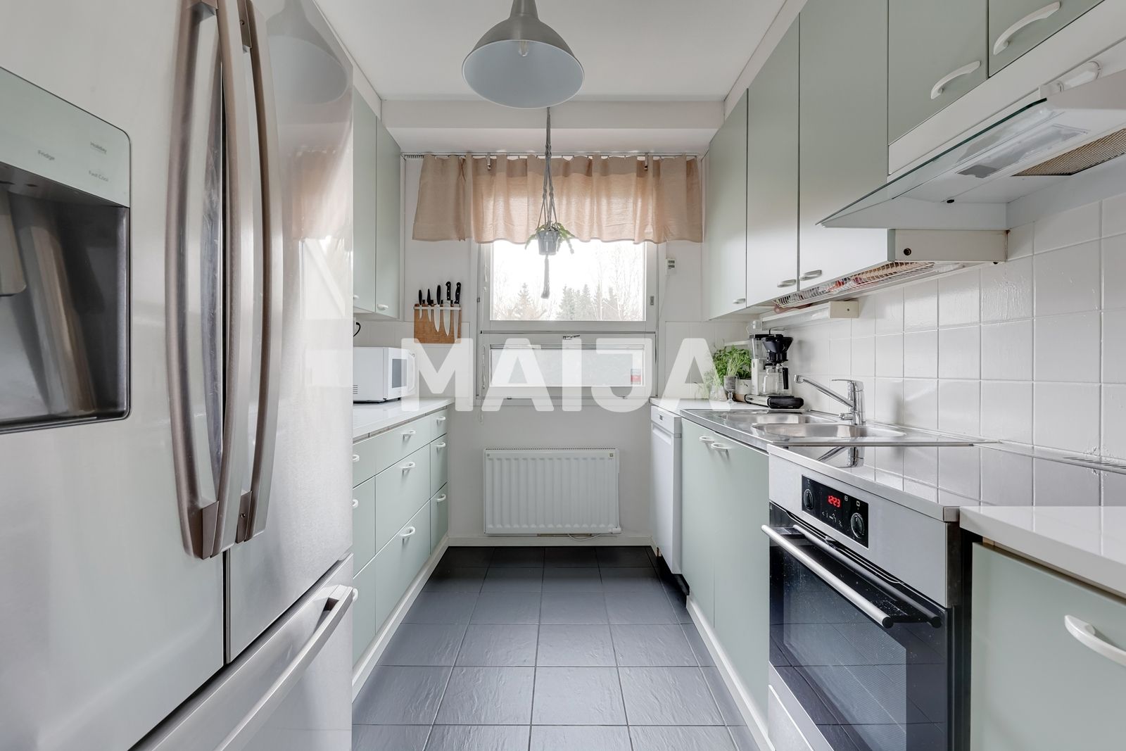 Bienvenido a visitar este luminoso y bien cuidado adosado en la zona tranquila de Töyrynummi. La casa tiene un diseño claro y funcional, ideal para familias con niños, por ejemplo.