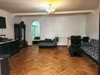3-roomed 100 sq.m. apartment for sale on Nucubidze III bl, I floor, old renovated, with heating, 20 sq.m. veranda, with 80 sq.m. renovated basement with bathroom, individual entrance, possible to use as an office or for commercial purposes