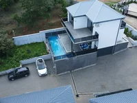 La casa tiene una piscina privada. 1 - garaje para 2 coches, una gran estación de almacenamiento seco y de bombeo para la piscina se encuentra debajo. Puerta automática con control de radio. 2 - planta principal, cocina abierta incorporada con todos los electrodomésticos y hall, vestidor independiente, sala de calderas y lavandería en este piso. 1 baño. Acceso a la piscina en esta planta y una gran terraza. La calefacción es un suelo cálido. Aire acondicionado Inverter. Vista desde la piscina - montañas verdes. 3 - 2 dormitorios. Uno 15m2, el otro 25m2. Ambos dormitorios tienen acceso a una gran terraza. Acceso común al balcón del otro lado, con vistas al mar y la ciudad. Esta planta tiene un baño compartido para dos dormitorios. Calefacción - radiadores, cada uno - su propio aire acondicionado.