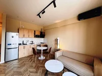 Apartamento de 2 habitaciones de 45 metros cuadrados en venta en Saburtalo, en University str, en nuevo complejo, en la 5a planta, nuevo reformado, con calefacción central, aire acondicionado, muebles, técnica, internet, balcon, patio asegurado con patio