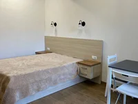 El apartamento tiene una completa reparación de acabado, baño completo, lavadora, muebles de cocina, nevera, microondas, superficie de cocina, capucha, cama con mecanismo de elevación y espacio de almacenamiento adicional, armario, aire acondicionado, su caldera de gas con radiadores de pared, cómodo balcón frente al lado de las montañas.