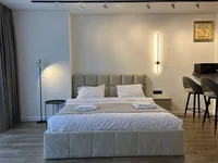 Un enorme apartamento estudio en venta. Turnkey con reparaciones caras de alta calidad, en tonos hermosos de color pastel. El apartamento está totalmente equipado con muebles y electrodomésticos, hay un baño. Acogedor balcón con vistas al mar en un complejo residencial