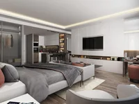 En venta un estudio acogedor con área de reparación de diseño de 44.3 metros cuadrados. El estudio está situado en una excelente zona, 8 Lech y Maria Kaczyński Street, en el piso 13 de un edificio de 13 plantas.