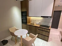 Apartamento con vistas a la venta en el complejo premium Bagrationi Residence, Batumi. Dirección: 131a Bagrationi Street. Bagrationi Residence es un moderno proyecto residencial premium en el centro de Batumi, junto al mar y el estadio Batumi Arena. Superficie: 36m2. Piso: alto 17, ventanas panorámicas