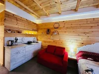 Apartamento en venta en Gudauri en Gondola Road, 33 metros cuadrados. El apartamento tiene 1 dormitorio, el apartamento está en la 2a planta, hay 4 plantas en total, el apartamento también tiene 1 baño, el edificio está recién construido.