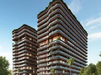 Proyecto: estudios modernos, apartamentos de una habitación y dos dormitorios, terraza exterior, locales comerciales, piscinas cubiertas y al aire libre, gimnasio moderno, spa, sauna finlandesa, sala de vapor, servicios de conserjería, seguridad de las 24 horas, salón de negocios, aparcamiento subterráneo y restaurante de alta calidad con terraza panorámica