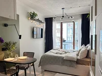 En venta cómodo estudio, situado a sólo 50 metros del mar. El apartamento tiene una elegante renovación de diseño, impresionantes vistas del mar y las montañas abiertas desde las ventanas. Hay un cómodo aparcamiento en el patio del complejo, y un supermercado funciona en el edificio. Hay dos ascensores modernos para su comodidad.